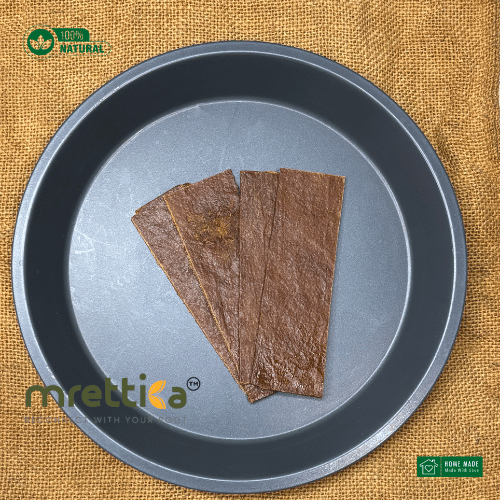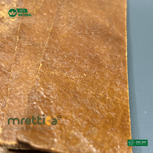 Langra mango originates in Varanasi, India. But it is widely produced in Bengal too. It produces very good Aam Papad or Aamsotto because of its fleshy and juicy characteristics. Aam Papad Langra has a chewy and leathery texture that would remind you of the days when the same used to be left on the roof. The complete gang of cousin-brothers and sisters would stay alert and utilise every opportunity when the elders were not watching. Stealing the still-raw Aamsotto and having it before anyone sees was nothing less of an adventure. Let yourself return to those nostalgic days with pure, chemical and preservative-free Aam Papad Langra from Polli Gram.