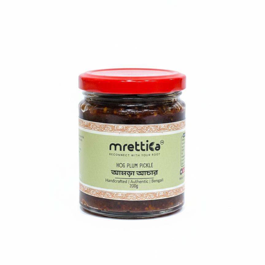 The crispness of sun-dried amra, the pungency of mustard oil, and the artistic blend of spices like panch phoron make this pickle a true classic. Pair it with khichuri on a rainy day, or simply lick it off the spoon for a burst of tang.