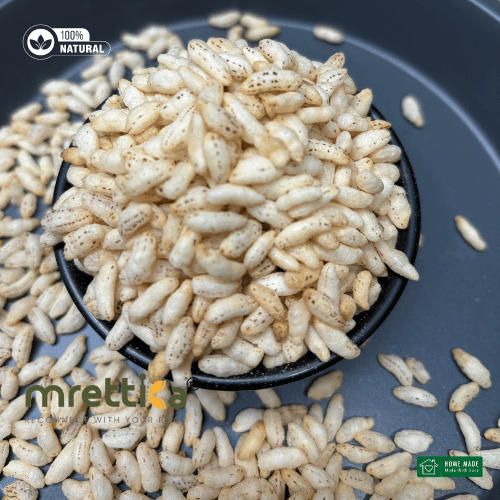Deshi Muri is a product of rice. We heat rice grains in a sand medium in the oven. No additional oil or chemicals retain the flavour and nutrients in Muri. Our Deshi Muri is produced from various types of rice like Gobindobhog Rice, Ghee Rice, etc. The source changes its flavour and appearance. But the Deshi Muri remains the perfect choice for small hunger sessions. Munch on it guilt-free.