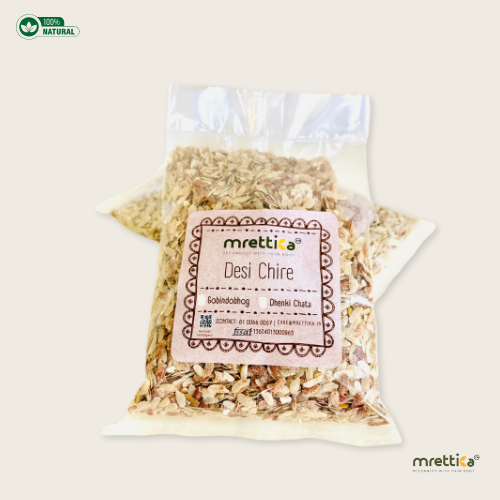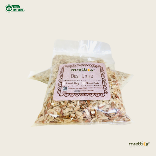 Dheki is a traditional tool for dehusking rice grains and making rice products. Dheki Chhata Chire, a derivative of red rice or Dheki Chhata Rice, is a perfect definition of wholesome food. Dheki Chhata Chire is a favourite to many for its high carbohydrates and fibres. Nowadays, people going through a weight loss journey can eat this guiltlessly. These grains are bigger than other varieties of Chire, and so keep the stomach full longer. Dheki Chhata Chire brings the original earthiness to your plate.