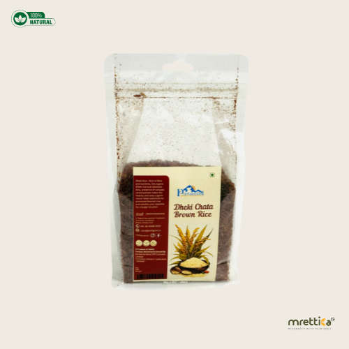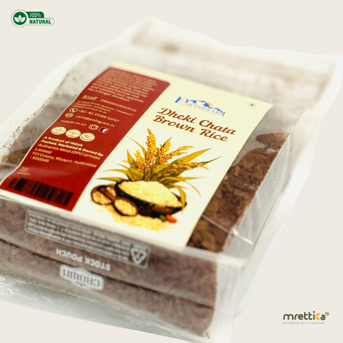 If we can get back in time, we might find rural women using the traditional agricultural tool Dhneki to thresh the paddy grains so that the outer husk separates from the rice grains. The rhythmic sound of the Dhneki with the tinkling sound of the bangles on their hands is nothing but nostalgia. The process produces fresh, unpolished, and probably the healthiest brown rice. Boil and cook the hand-pounded rice grains perfectly and experience how bold, chewy, yet uniquely tasty it is. A spread on your table with rice of such unique colour and flavour will surely invite astonishment filled gapes from your guests.