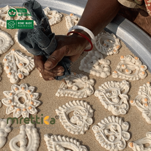 Kolai Daal is the most common ingredient for making Goyna Bori. You can fry it in your choice of oil and have it as a snack. On Niramish days, it can be a saviour for you and help your taste buds get the better of plain Daal-Bhaat. Take a bite of this excellent example of craftsmanship and think how amazingly Bengali cuisine pairs food and wearable in the same bracket and still makes it relevant.